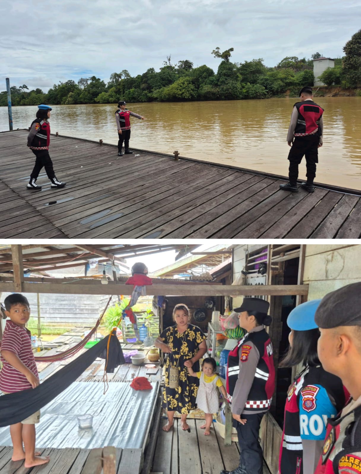Mereka memberikan imbauan kamtibmas, mensosialisasikan kembali pentingnya layanan darurat Call Center Polri 110, sekaligus memantau debit air Sungai Kahayan sebagai langkah antisipasi dini terhadap potensi banjir.
