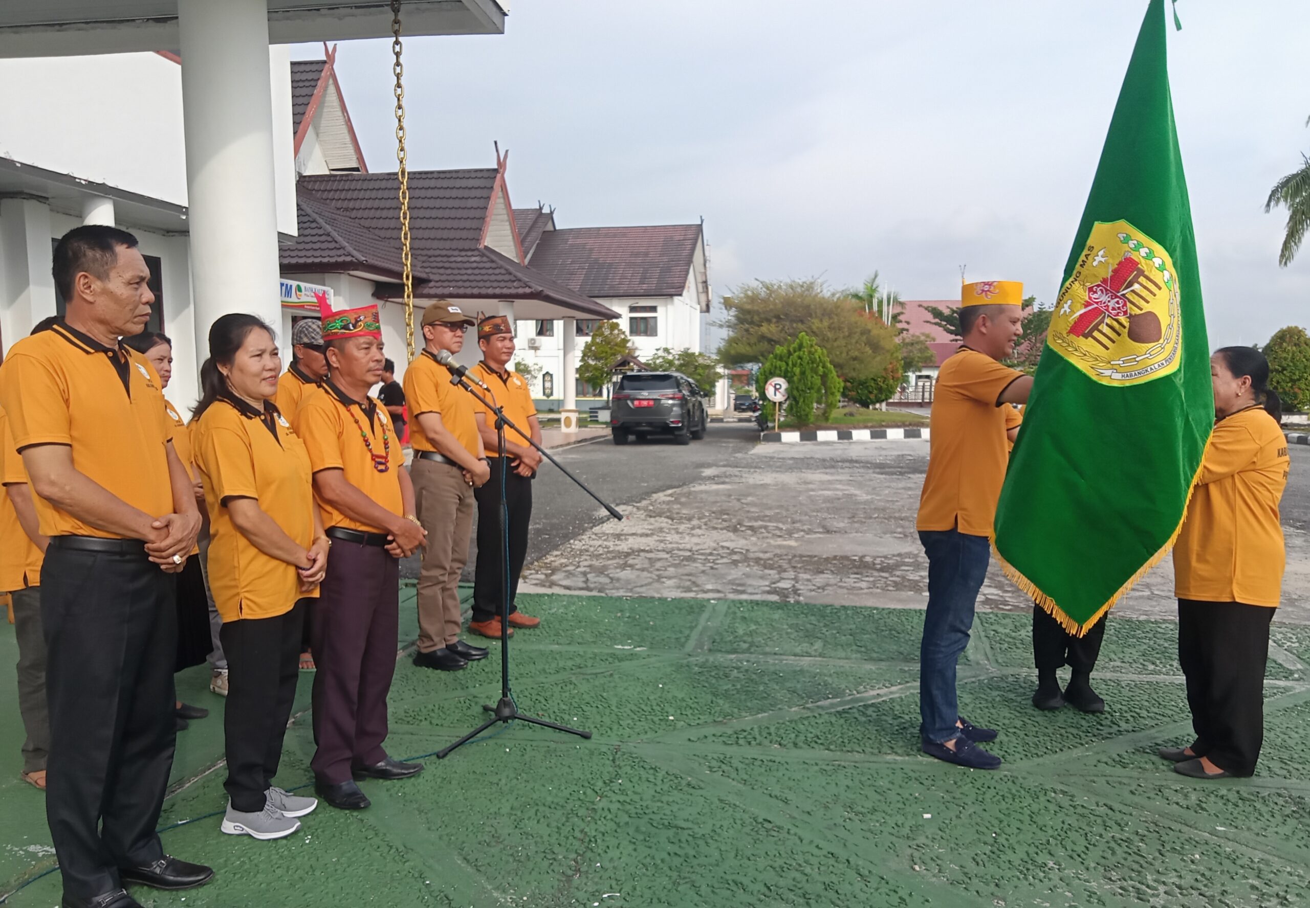 Bupati Gunung Mas (Gumas) Jaya S Monong memberangkatkan kontingan Gumas mengikuti Festival Tandak Intan Kaharingan (FTIK) ke-XI tingkat Kalteng di Sampit Kotawaringin Timur (Kotim).