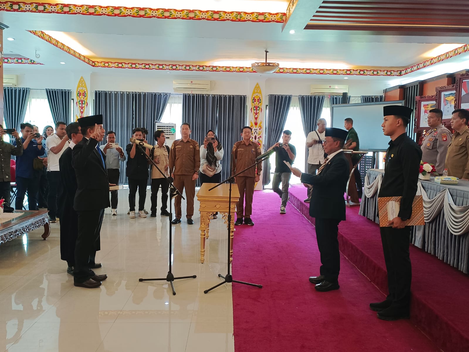 Bupati Murung Raya (Mura), Heriyus, melantik Direktur Perusahaan Umum Daerah (Perumda) Danum Pomolum Kabupaten Murung Raya periode 2025–2030, di aula Cahai Ondhui Tingang, Gedung B kantor Bupati Mura, Senin (14/7/2025).