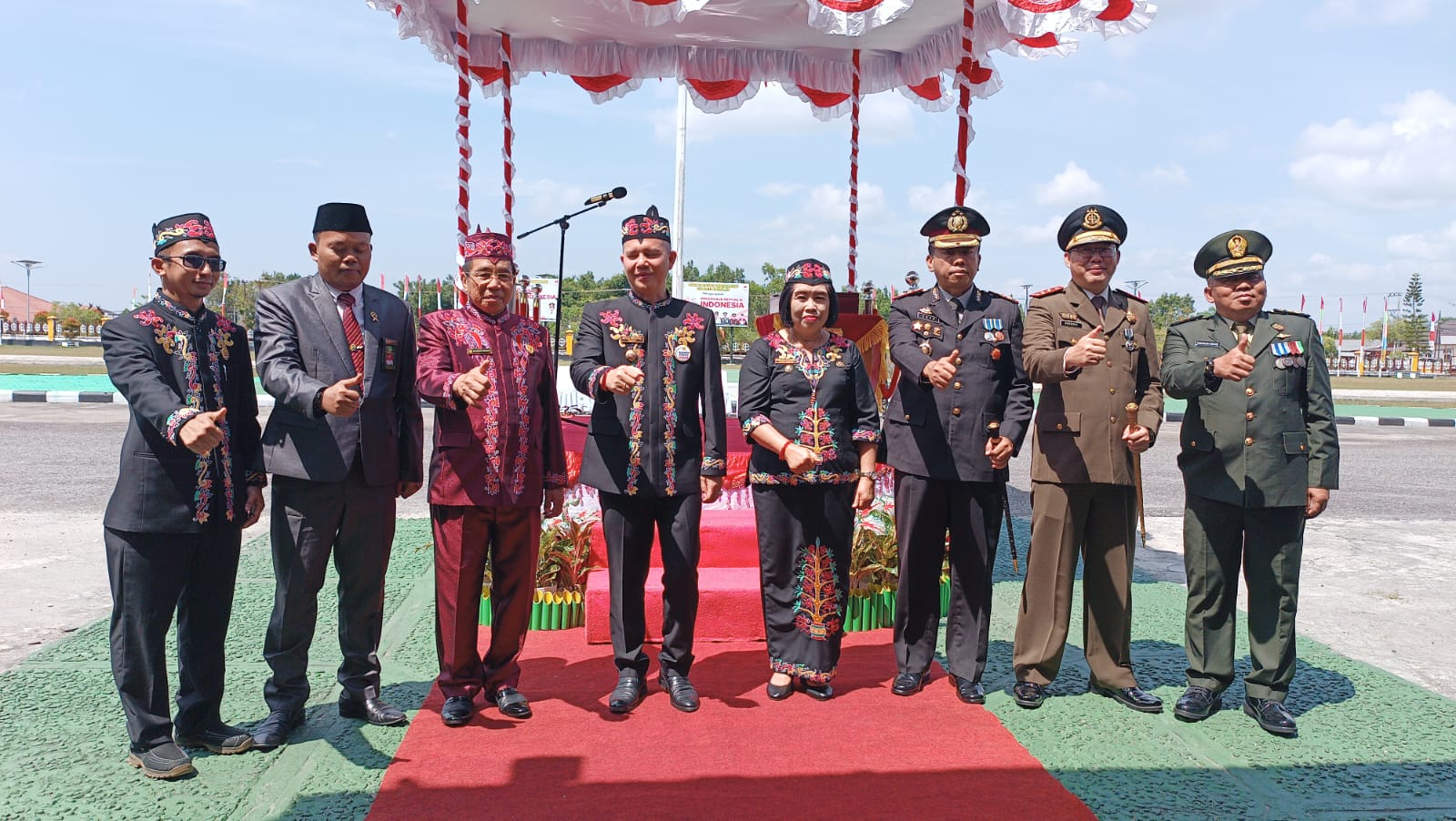 Foto. Bupati Jaya, Wabup Efrensia LP Umbing, Ketua DPRD Akerman Sahidar bersama unsur forkopimda usai peringatan detik-detik Proklamasi Kemerdekaan RI ke-78, di Halaman Kantor Bupati, Kamis (17/8) pagi. (Jendela Kalteng/Ist)