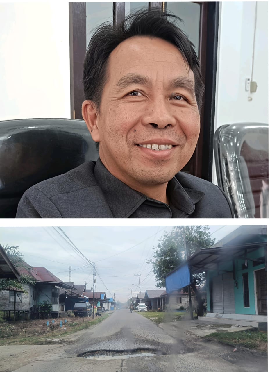 Foto. Kadis PU Gumas Baryen (atas). Badan jalan rusak (berlubang) di jalan Sangkurun yang memerlukan perbaikan (bawah).(Jendela kalteng/nh)