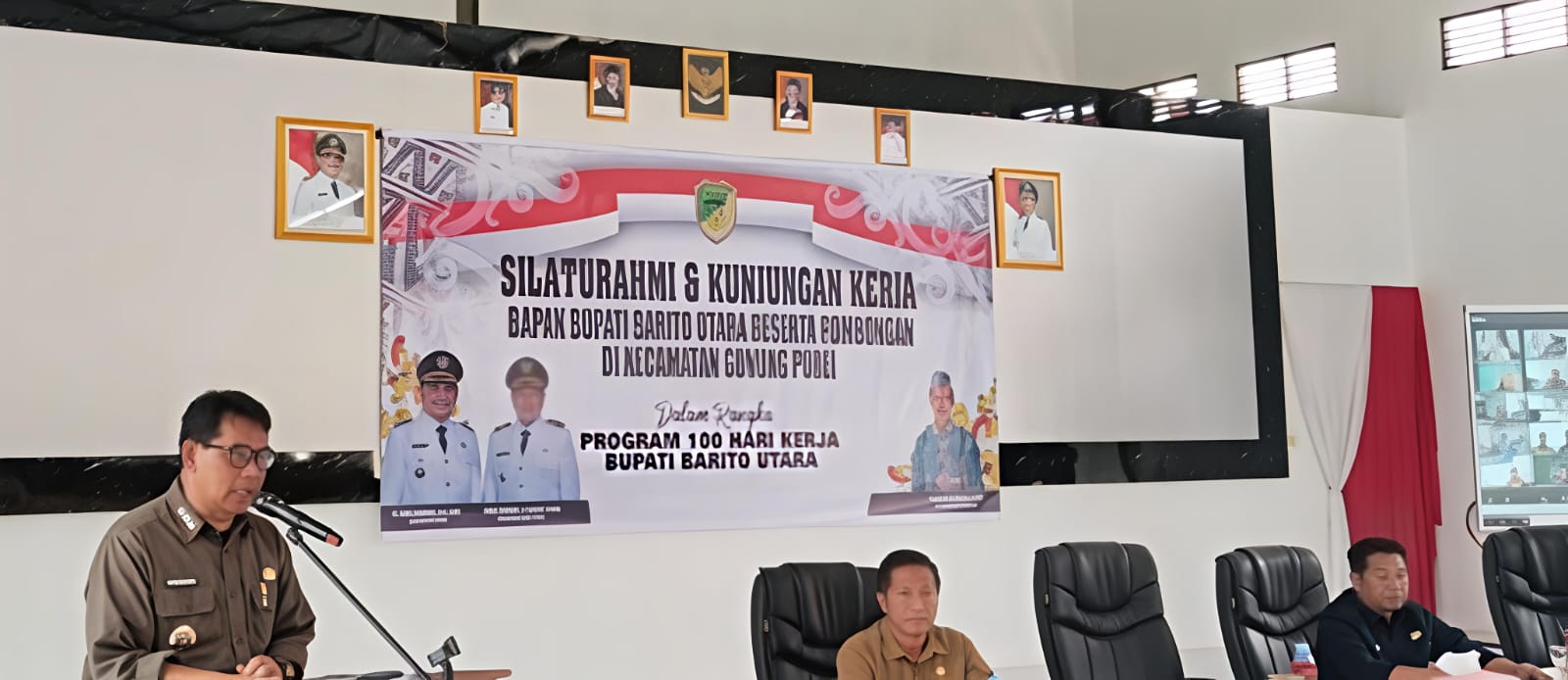 Foto. Bupati Barut Shalahuddin saat memberikan sambutan di Aula Kecamatan Gunung Purei, Senin (1/12/2025).(Jendela Kalteng/Ist)