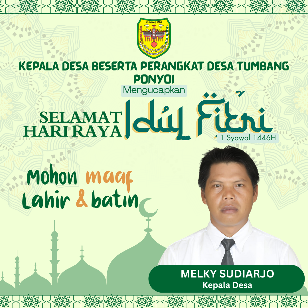 Iklan Kepala Desa Beserta Perangkat Desa Tumbang Ponyoi Mengucapkan Selamat Hari Raya Idul Fitri jendelakalteng 30/03/2025 Bagikan Ke Sosial MediaKepala Desa Beserta Perangkat Desa Tumbang Ponyoi Mengucapkan Selamat Hari Raya Idul Fitri 1 Syawal 1446 H. Minal Aidzin Wal Faizin Mohon Maaf Lahir Batin.Kepala Desa: MELKY SUDIARJO Post Views: 164Bagikan Ke Sosial MediaContinue ReadingPrevious Previous post: Pimpinan Beserta Pegawai Kantor Kejaksaan Negeri Kabupaten Gunung Mas Mengucapkan Selamat Hari Raya Idul Fitri20-Next Next post: Anggota DPRD Gunung Mas Singong Mengucapkan Selamat Hari Raya Idul FitriTinggalkan Balasan Batalkan balasanAlamat email Anda tidak akan dipublikasikan. Ruas yang wajib ditandai *Komentar *Nama * Email * Situs Web Simpan nama, email, dan situs web saya pada peramban ini untuk komentar saya berikutnya. Related News Pengumuman Kehilangan : Lembar Sertifikat atas nama SALAMAT 02/07/2025 Pengumuman Kehilangan : Lembar Sertifikat Tanah atas nama SRI WATI 30/06/2025