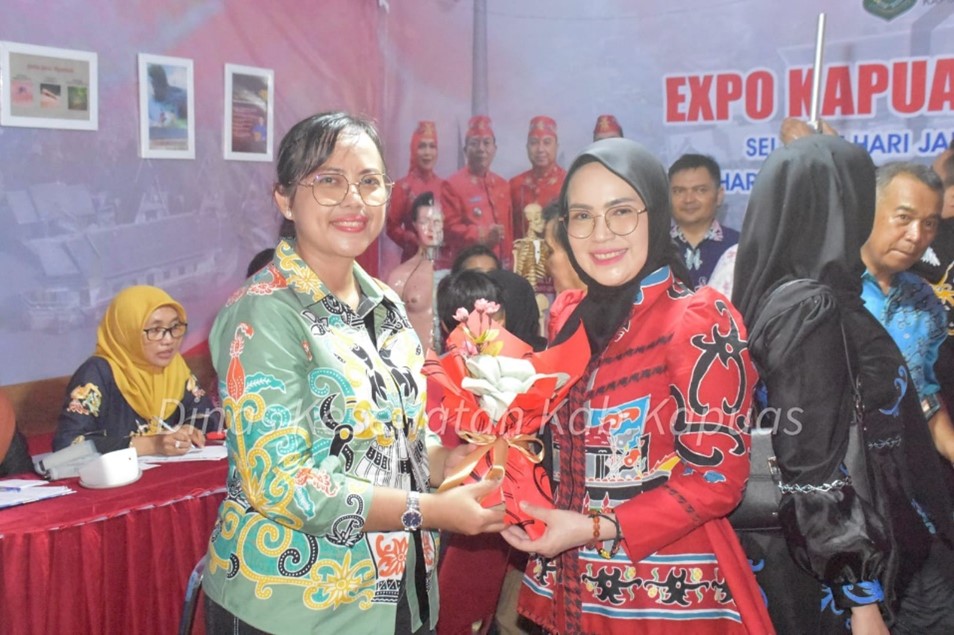 Foto. Kepala Dinas Kesehatan Kapuas, dr. Tonun Irawaty Panjaitan Terima Kunjungan Ketua TP-PKK Kapuas, Hj. Siti Saniah Wiyatno, di Stand Dinas Kesehatan Pada Expo HUT Kapuas 2025, Jumat (2/5/2025) (Jendela Kalteng)