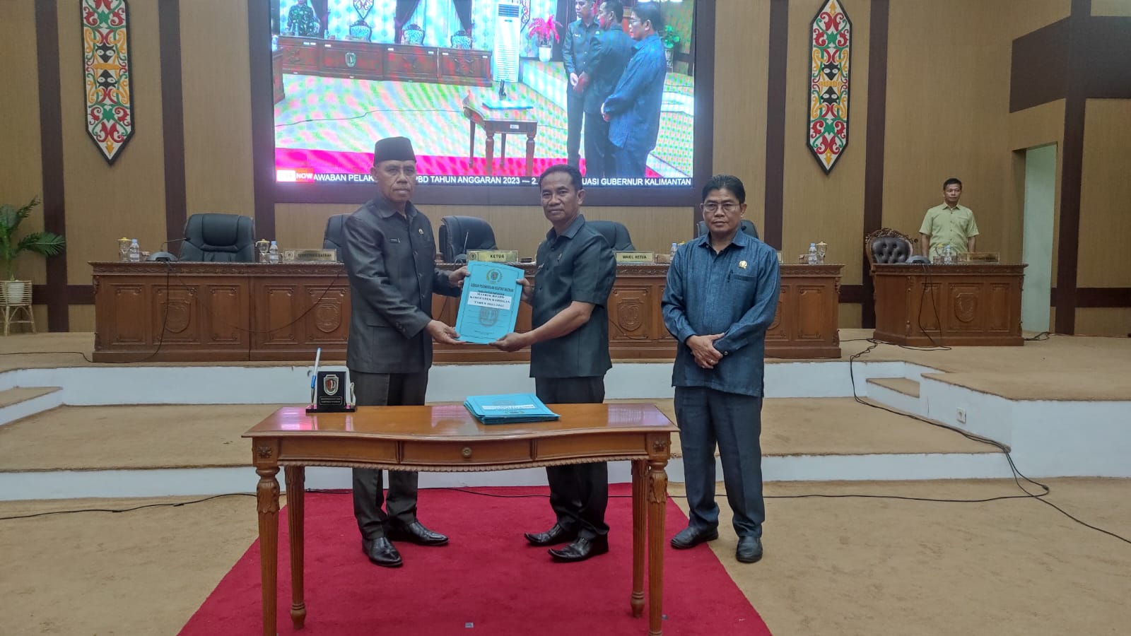 “Hasil evaluasi Gubernur terhadap Raperda LPJ tahun anggaran 2023 dan RPJPD 2025-2045, serta pembentukan pansus tatib DPRD sudah kita tandatangani bersama dan diserahkan kepada Pemerintah Daerah (Pemda) Katingan yang diterima oleh Sekda Katingan,”Ucap Marwan.