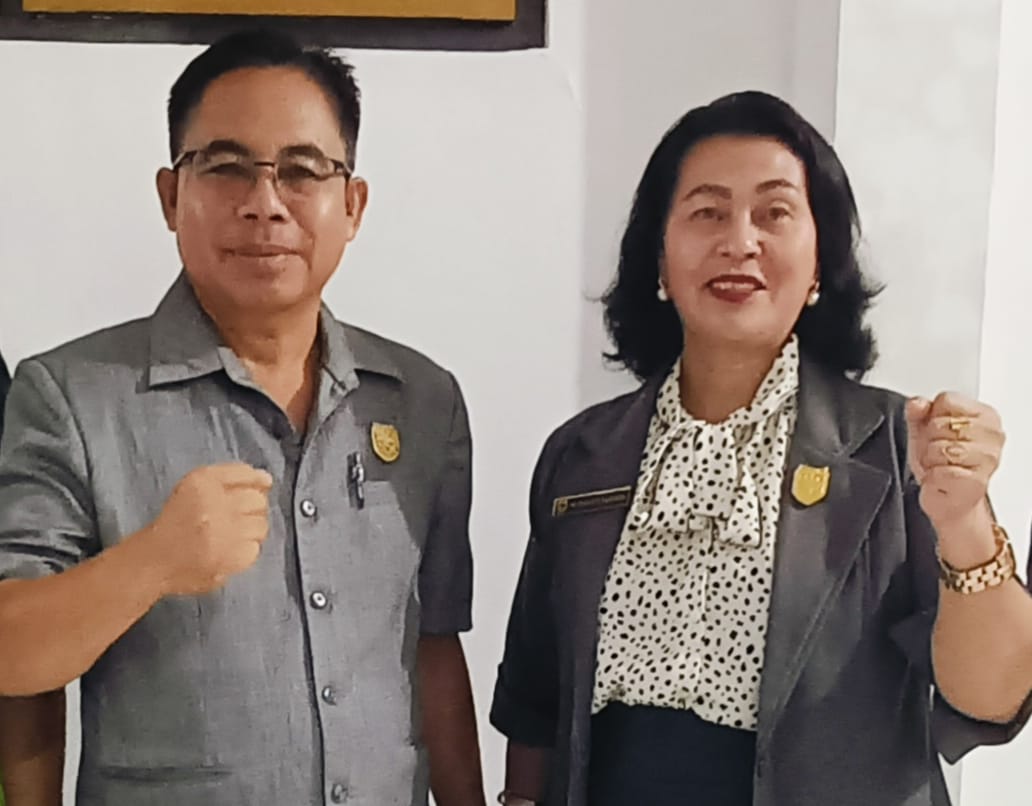 Foto. Anggota DPRD Gumas Rayaniatie Djangkan bersama koleganya Anggota DPRD Herbert Y.Asin.(Jendela Kalteng/nh)