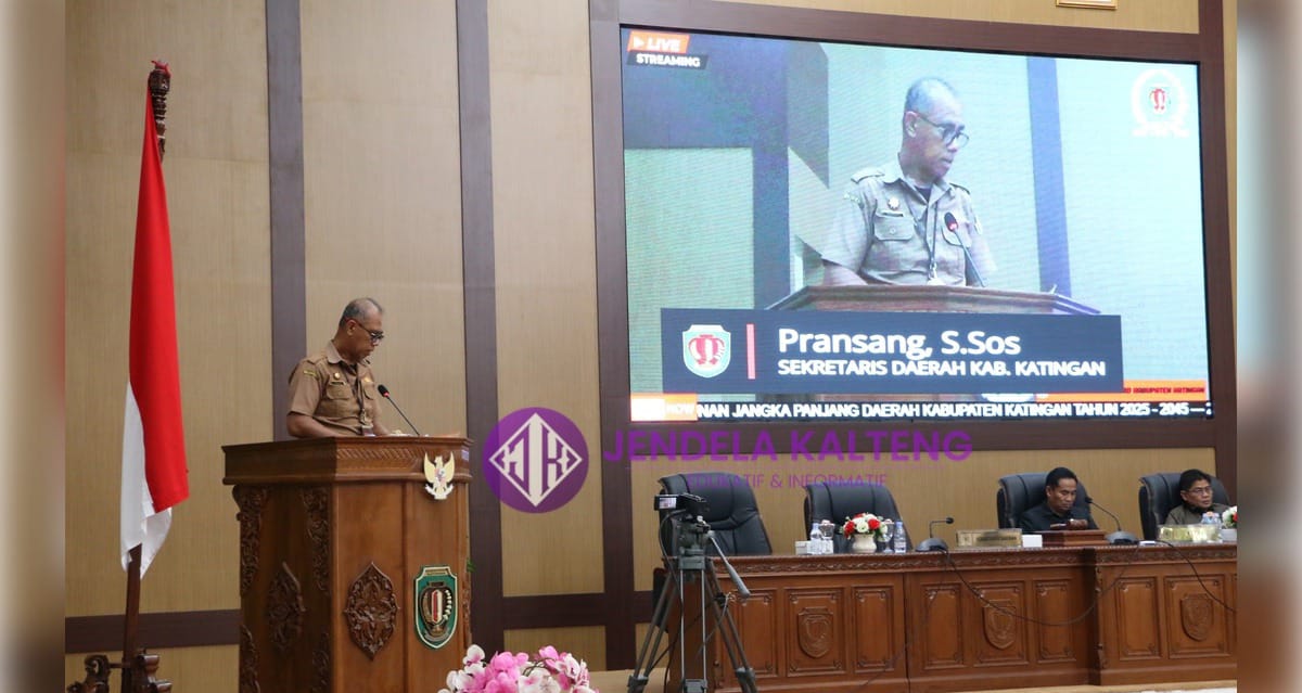 Foto.  Sekda Katingan Prasang saat menyampaikan pidato raperda LPJ pelaksanaan APBD TA 2023. (Jendela Kalteng/Tr)