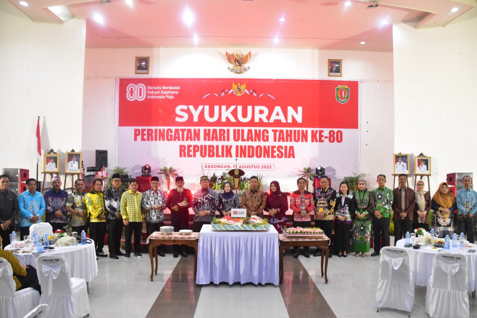 KASONGAN – Dalam suasana penuh semangat kebangsaan, Pemerintah Kabupaten (Pemkab) Katingan menggelar malam syukuran peringatan Hari Ulang Tahun (HUT) ke-80 Kemerdekaan Republik Indonesia, Minggu (17/8/2025) malam. Acara berlangsung khidmat namun tetap meriah di Gedung Salawah, Kota Kasongan, yang menjadi pusat kegiatan penutup seluruh rangkaian peringatan kemerdekaan di daerah tersebut.