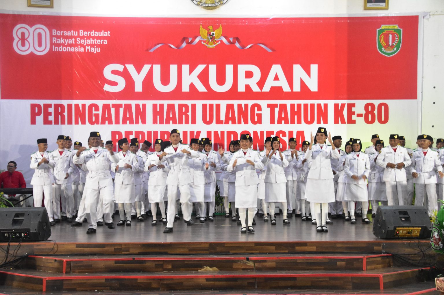 KASONGAN – Malam syukuran peringatan Hari Ulang Tahun (HUT) ke-80 Kemerdekaan Republik Indonesia di Kabupaten Katingan berlangsung meriah dan penuh makna. Bertempat di Gedung Salawah, Kota Kasongan, Minggu (17/8/2025) malam, suasana acara dipenuhi semangat kebersamaan, terutama dengan kehadiran para anggota Pasukan Pengibar Bendera Pusaka (Paskibraka) yang menjadi kebanggaan daerah.