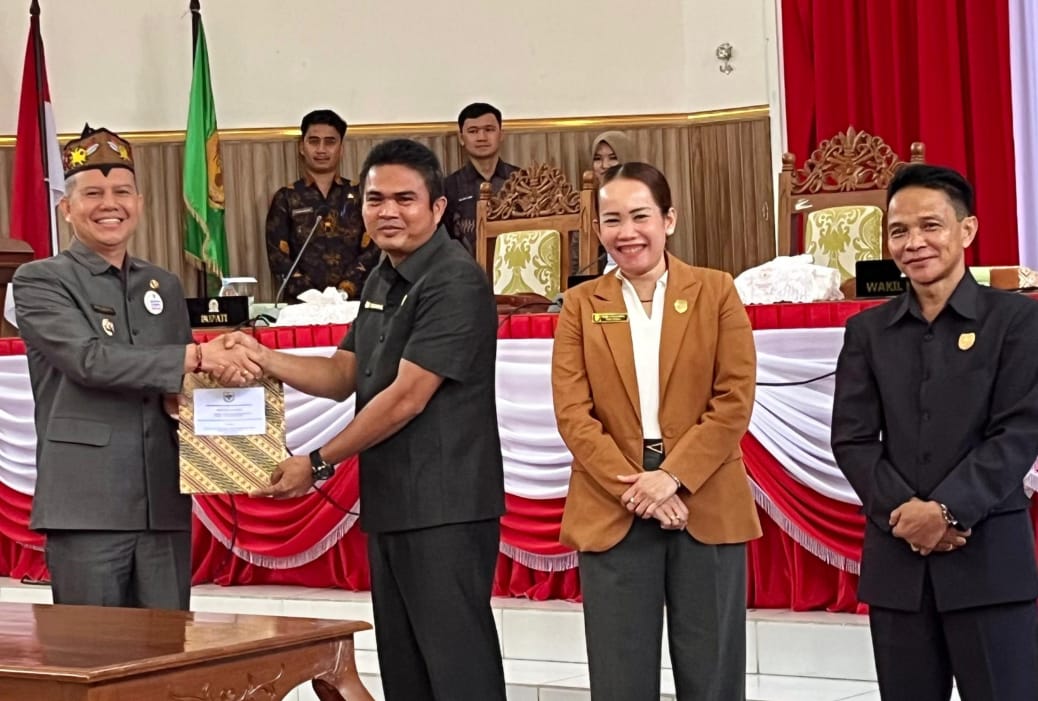 Kesepakatan dan penandatanganan Nota Kesepahaman (MoU) atas Rancangan Peraturan Daerah (Ranperda) tentang Rencana Pembangunan Jangka Menengah Daerah (RPJMD) Tahun 2025–2029,resmi dilakukan Pemerintah Kabupaten (Pemkab) Gunung Mas (Gumas) bersama Dewan Perwakilan Rakyat Daerah (DPRD) pada rapat paripurna ke-10 masa persidangan III tahun sidang 2025 yang digelar Ruang Rapat Paripurna DPRD Gumas,Kamis (3/7/2025)