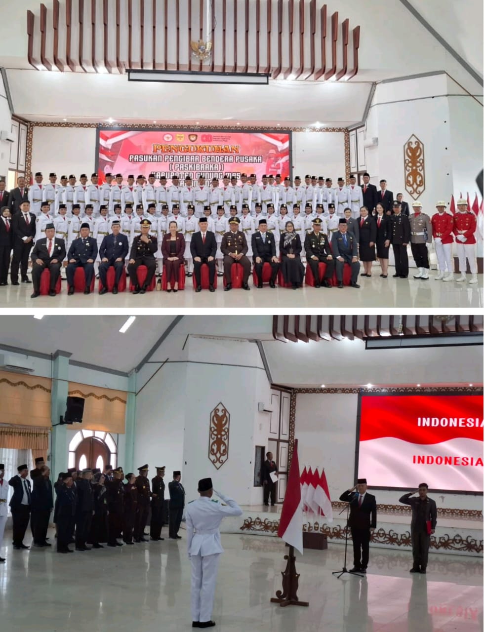 Wakapolres Gumas Kompol Indras Purwoko hadir mewakili Kapolres dalam upacara khidmat Pengukuhan Pasukan Pengibar Bendera Pusaka (Paskibraka) Kabupaten Gumas Tahun 2025.