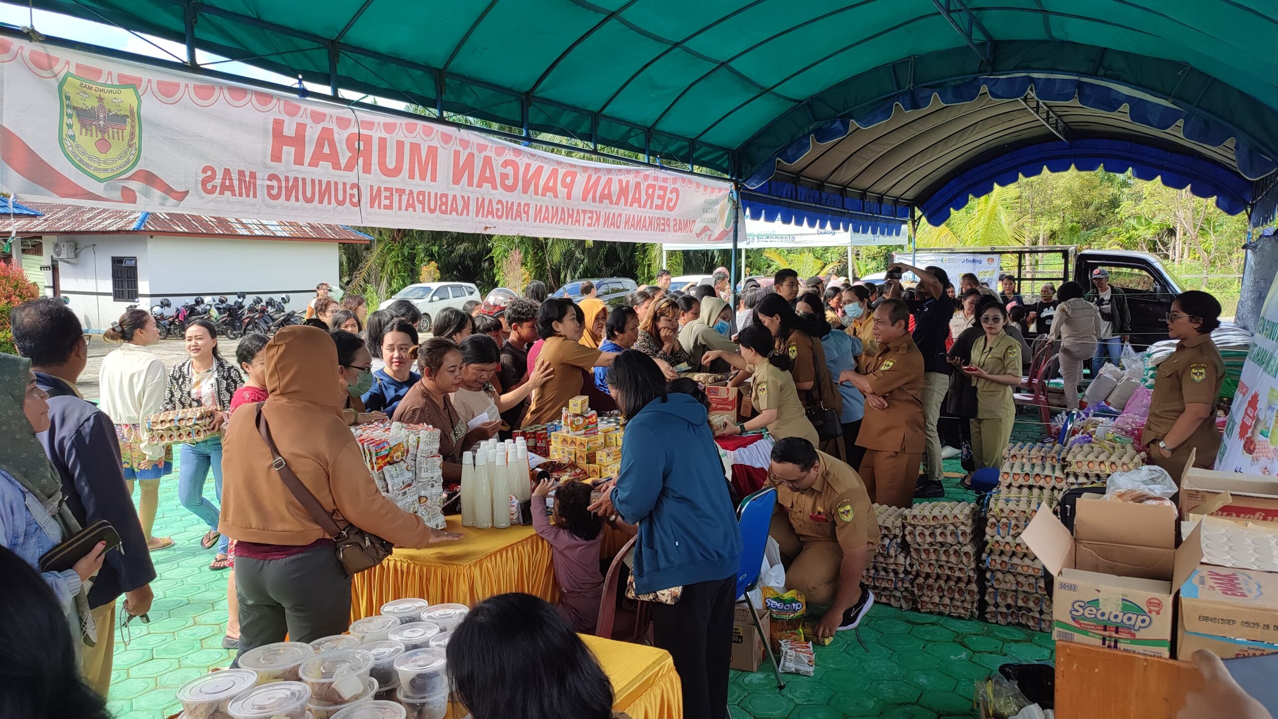 Gerakan Pangan Murah (GPM) yang dilaksanakan Dinas Perikanan dan Ketahanan Pangan (DPKP) Kabupaten Gunung Mas (Gumas) di Halaman Kantor DPKP Gumas Jalan Brigjen Katamso Kuala Kurun, Senin (24/3/2025),mendapat antusiasme warga yang sangat tinggi.